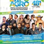De 18 a 21 de setembro de 2025, São Mateus será palco da Expo Agro 2025, a maior festa agropecuária do Norte capixaba. Em clima de comemoração pelos 481 anos do município, o evento vai reunir shows nacionais, rodeio, feira agropecuária, gastronomia, parque de diversões e atrações culturais, transformando a cidade em um verdadeiro ponto de encontro de famílias, turistas e produtores rurais.