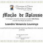 Já em novembro de 2023, foi homenageado pela Câmara Municipal de Viana, através do vereador Joilson Broedel, com Moção de Aplausos por suas contribuições ao mercado local. No mesmo período, também recebeu Moção Honrosa da Câmara Municipal de Linhares, concedida pelo vereador Messias Caliman, em reconhecimento aos serviços prestados e às contribuições realizadas no município. A homenagem simbolizou não apenas o reconhecimento institucional, mas também o carinho e a admiração conquistados durante sua passagem pela cidade.